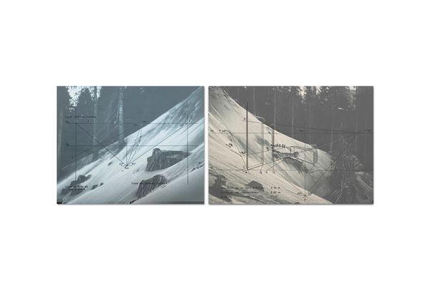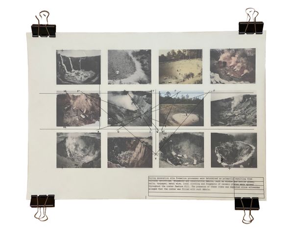 Visually, the work consists of layered imagery, incorporating found and vernacular photographs, film negatives, aerial images, topographic maps, copper engravings, architectural drawings, AI-generated images, found objects, and text excerpts from witness testimonies and forensic reports. Landscape serves as a central motif, while materials traditionally used for surveillance, analysis, and record-keeping are repurposed to blur the boundaries between fact and fiction, presence and disappearance.