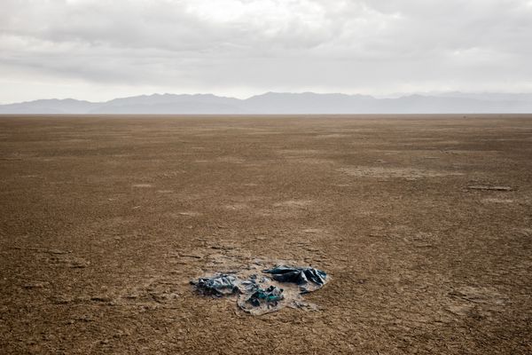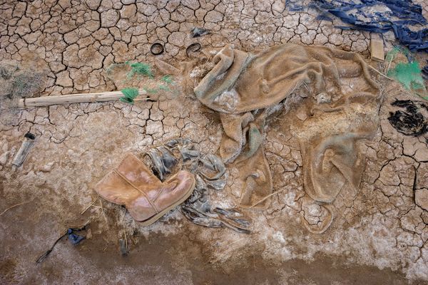 Petrified bodies of birds, nets incrusted in the sand, fish converted into stone: memories of water from Bolivia.