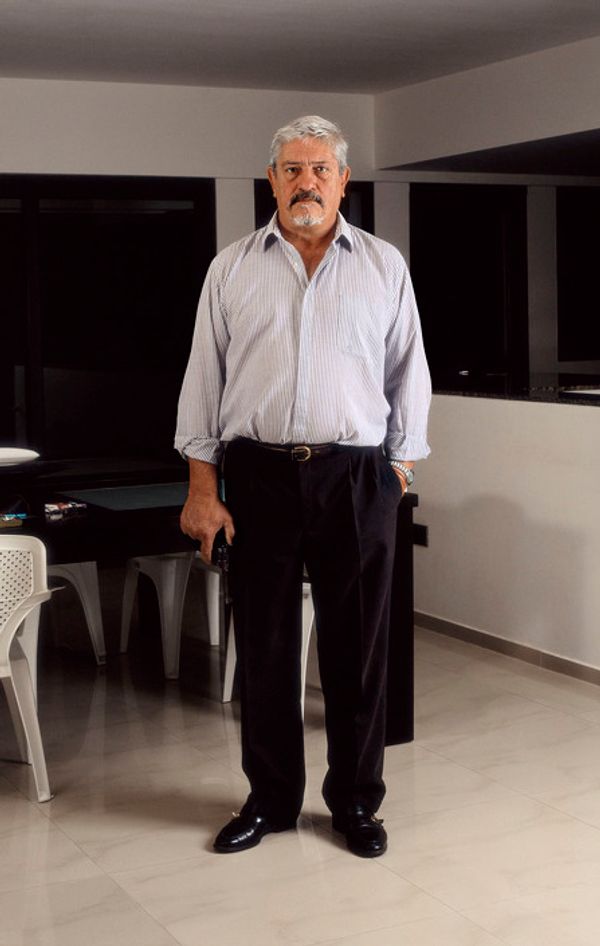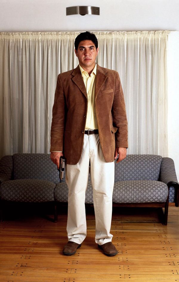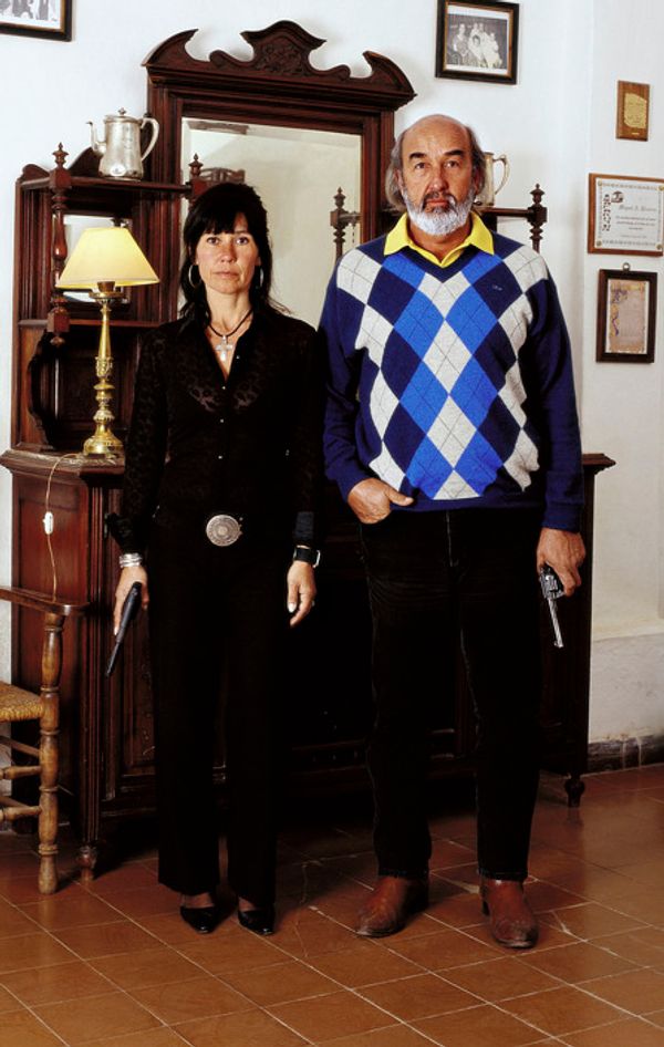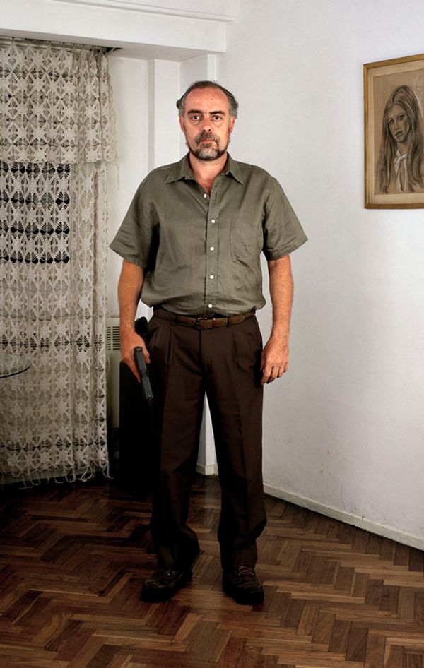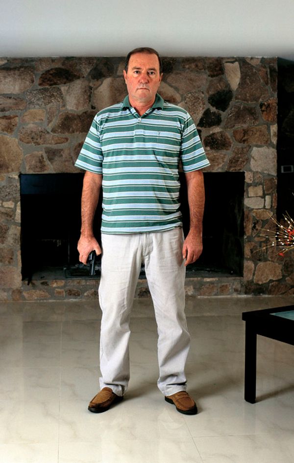 I am taking portrait photos of middle and upper class people in their homes. Each person has his gun in hand. The title of this work is “Potential.” The decision to work with these segments of society goes against our normal model of people carrying weapons. In each society the collective imagination generates a stereotype of suspicious persons. The media’s repeated images of a single theme and context anesthetize one’s powers of observation and the possibility of their reflecting on what they see.