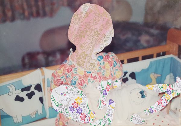 Alongside the photographs, I began making collages that reimagine family photographs through patterns in origami. The use of origami patterns acts as a symbolic gesture of mixing and transformation. As a TCK (third culture kid), these patterns express the layered nature of identity: the folding and unfolding of cultures, environments, and values that shape who we are. The merging of family imagery with these visual forms reflects the fluidity of belonging and the beauty of hybridity as a living process.