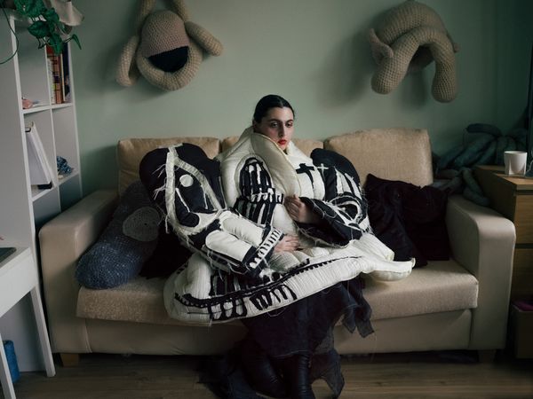 All altered into a mixture of surrealism and truth - whether it's Hannah dressed in an outfit built like an armchair and positioned in front of a large mansion, but also holding her own wig and cane. Myah wearing their own design inspired by their battle religious upbringing and their queer identity, or Diogo in his drag character 'Co Kendra' captured in his own house.
