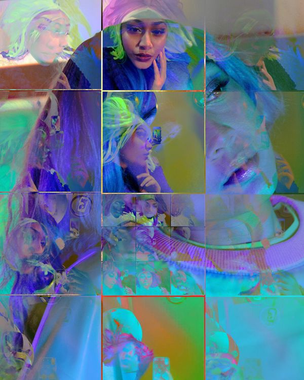 With layered, hyperreal photographic tableaus and portraits of Nova A, a queer Muslim Bangladeshi activist and model, I approach character cultivation as resistance, and explore facets of the digital self navigating a malleable reality while being cognizant and critical of power structures that are encoded within technology. Throughout the series, photographic worlds imbued with symbolism become portals to explore how the digital world can be an avenue to create agency for marginalized persons, realms are dissolved, collapsed, enmeshed and the ritualistic elements of technomancy are explored to invoke and evoke. It is often a realm populated with algorithmic biases, discriminatory facial recognition systems, censorship and surveillance, especially for identities relegated to the periphery with multitudes made monolithic. With the proliferation of bots, deep fake technology, extractive data mining and lives subsumed by the lure of social media, the real and virtual are coalescing and becoming increasingly indiscernible. The imagery investigates how virtual spaces became deeply affective and integral to the composition of layered identities, agendas and ideologies.