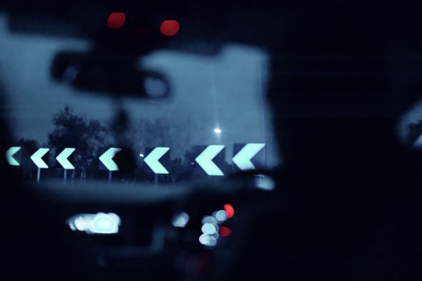 Denkovic photographs are made during her travels, in motion, driving or riding between towns or passing through unattractive locations and streets. The background of the series is a constant movement, displacement from one landscape to another, a photographic discovery and looting of a place. The artist is not pursuing any landmarks or tourist attractions. On the contrary: her method turns the notion of tourist photography into an irony. The locations attracting her are marginalized, neglected and unfrequented. In order to record and potentially connect the emotionally charged dots on the map of her movement, the artist resorts to a high-risk maneuver, one that brings photography closer to the adrenalin sports: - While I am at the wheel, I put the camera before my face, take snapshots and continue driving at the same time. With this bold walk at the edge of a precipice she can one of only two possible outcomes: either the emotion becomes visible through the eye of the camera, or the entire world becomes invisible. Regardless of the result, the process - in and by itself - is precious, because it is happening between the visible and invisible, in a crevice of lasting and perishing, at the brink of deciding on a deeper immersion into life or becoming deleted from it. It is in this competition between the creative and the destructive that the artist tests the extreme, confirming that everything has its opposite embedded in itself.
