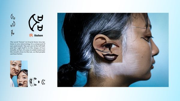 This project demonstrates the unique function of oracle bone inscriptions as a medium connecting ancient people with nature. It returns to the inscriptions' original essence, reproducing the perspective of people observing the natural world at that time. Four representative characters are selected for this project: Pu, Ting, Ling, and Guang, meaning universal, listen, order, and light.