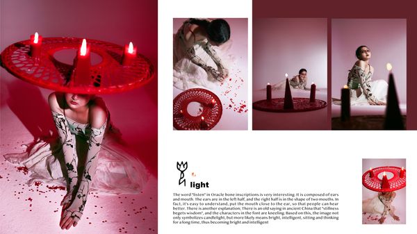 This photography series transforms the Oracle Bone Script, the oldest Chinese writing, into a visual language. Each image captures the ancient wisdom of early civilizations, inviting viewers to reflect on humanity's timeless connection with nature through