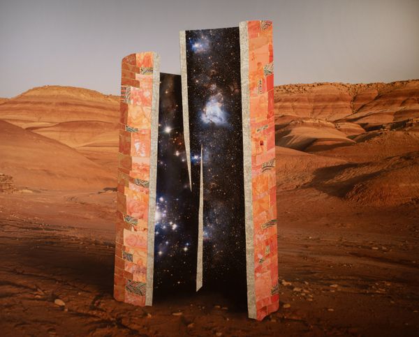 In this project I use generative AI and handmade collages to collapse time. I merge Mars-like landscapes with NASA images from real Mars and space, and I craft imaginary monuments to human stories carried to Mars.