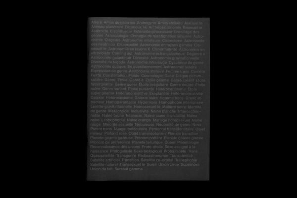 Just as we have been able to completely change our understanding of the sky, over the past few centuries, we must now reform the way we read, hear, see, and accept human identities, genders, and desires. They must no longer be bound, rejected, nor oppressed by any restrictive or binary views—the time has come to reshape the sky. By celebrating human diversity as well as by shedding light on its suffering and redefining its outlines, this series invites us all to gently recognize and to ultimately understand ourselves and each other.