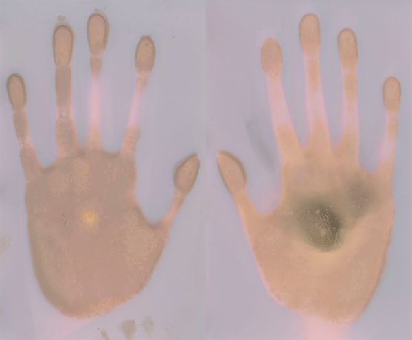 I use the process of lumen printing, in order to reconstruct my bodily experience and create symbolic evidence of past traumatic events that left only ephemeral physical traces. The imprints of my body are created through the actions of pressing, crushing and introducing the paper against different parts of my body. Contact generates a print from the chemical reaction between the sensitivity of the paper, body heat, body fluids and sunlight.