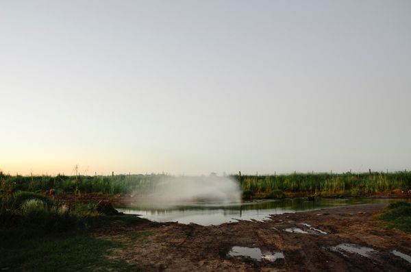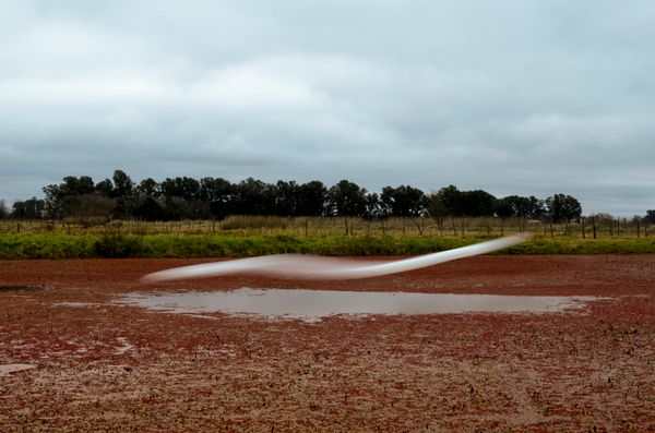 Estas fotografías fueron realizadas en la pampa húmeda, pareja, homogénea, aparentemente imperturbable: el tiempo de la espera, los campos inundados, los caminos muertos, un horizonte firme y controlable. Se hace preciso romper el horizonte para individualizar ese lugar dentro de los otros tantos lugares, agitar la calma, interrumpir la monotonía lisa de la pampa.