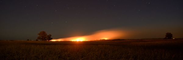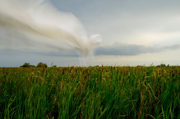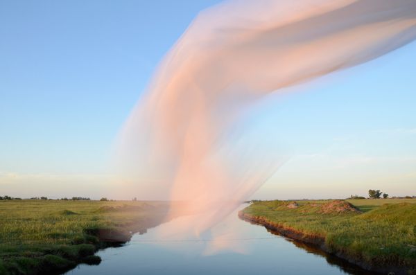 Aquí, en un intento poético por alterar el paisaje, aunque superado por la fuerza inevitable de la naturaleza que se manifiesta casi invencible, Leandro revela la figura oculta de un movimiento azaroso y contingente. Así, un instante se vuelve individual, se independiza del resto de los momentos que se suman unos a otros en esa homogeneidad que tiene el tiempo sucedido en la llanura. Ocurre lo imprevisto, lo inesperado, pero también sucede la intervención y la alteración deliberadas. Las fotografías son reflexión y pensamiento del diálogo permanente entre el hombre y el lugar que habita, un lugar que a su vez lo interpela y lo determina.