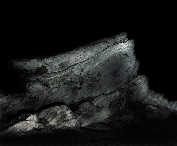 ROCK SAFARI is a large format analog study of rock outcroppings illuminated by a high-powered, long-range flashlight. These formations are selectively painted with light during exposures on 4x5 color negative that range from 8 to 45 minutes.