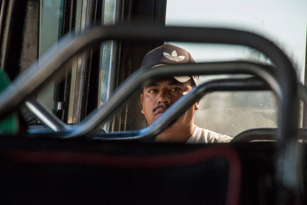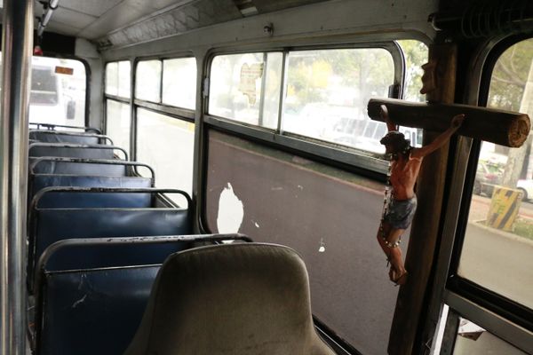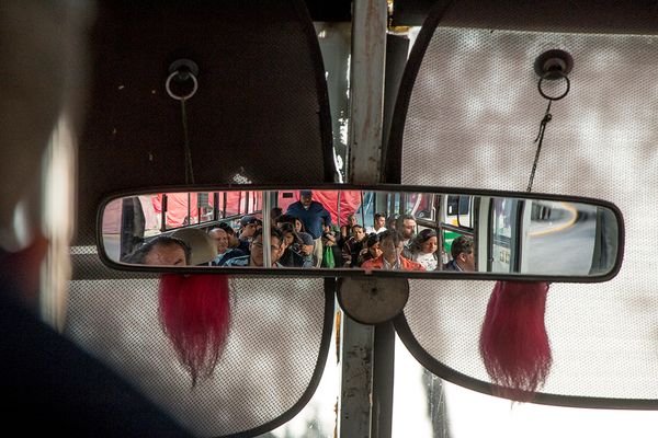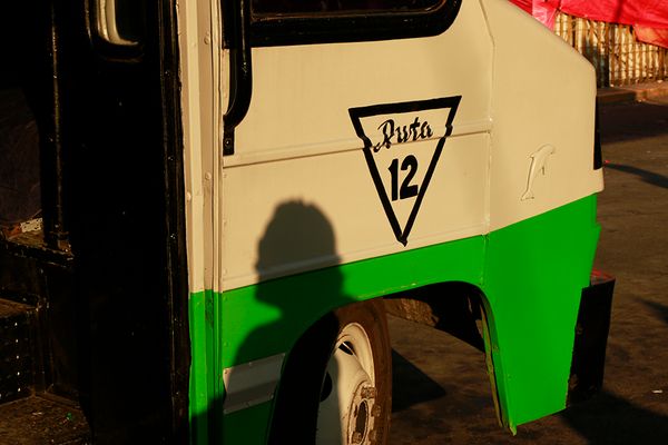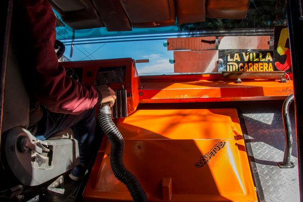 We are abstracted, the minibus is a rolling planet full of people with common destinies, with colored stools, stickers, religious or sports altars. There are also the minimalists, those that barely have a steering wheel, a gear lever and enough to count.
