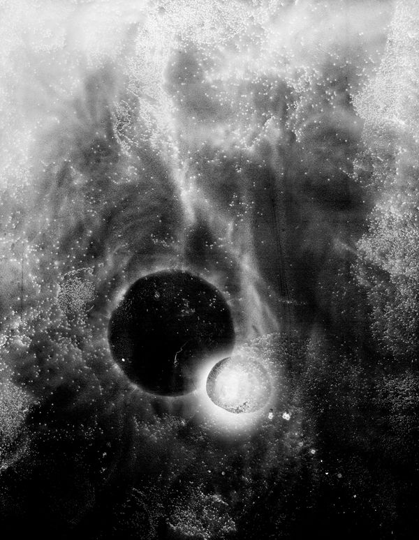 Arrival is marked by new life, as the energy existing throughout the universe is re-distributed by asteroids and comets. Transition becomes a sacred space between two worlds, when a dying star releases its iron into the birth process of a cell. The gene of the Urritopsis Dohrnii (immortal jellyfish) becomes an ever-developing landscape. A hive of butterflies is born. Through telescope and microscope, the artist marries the most majestic and minuscule of the earth's metamorphoses into the birth of new worlds defined by the beauty of change, itself. Harruthoonyan's creations conjure the lifetimes that exist within moments, and the glimmers of strangeness that give pause to our ever-evolving subconscious states.