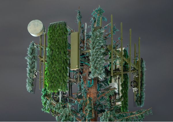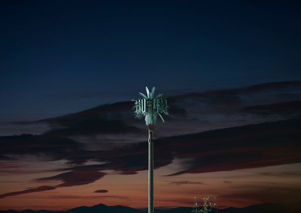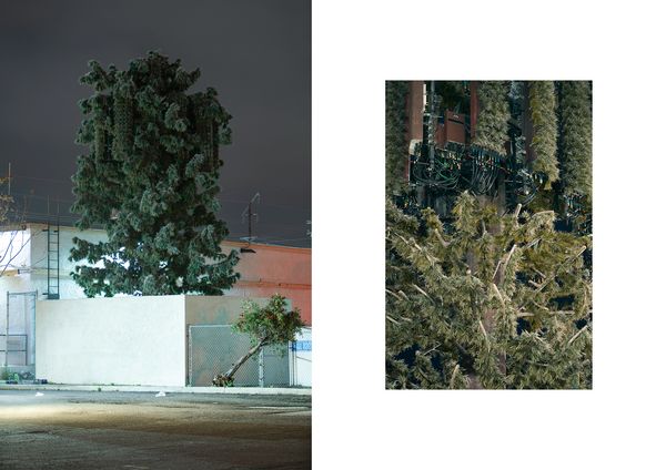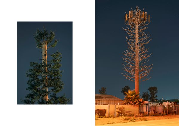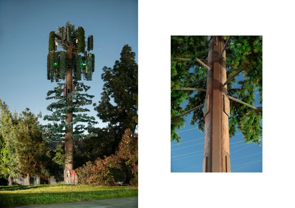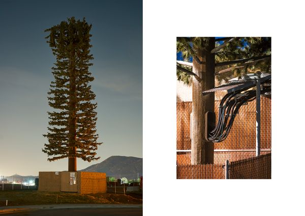 With the uprise of mobile devices, the infrastructural needs of the telecommunication industry have exploded, and since the 1980s, cell towers have started to fill the cityscapes. In 1992, Larson Camouflage, a company formerly working for the Disney theme parks, manufactured the first tree shaped disguise for a cell tower and started an industry that spread around the globe. As of now, there are more than 1000 "trees" in Southern California alone that have become manifestations of the strange relationship between humans and nature.