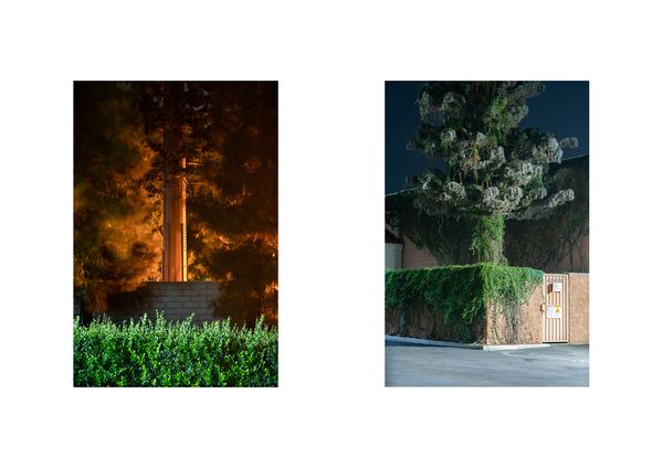 The images from the series Second Nature show the artefacts of the digital age that became a part of the Southern California landscape. These camouflaged communication and surveillance infrastructures can be described as a “societal preference for ‘fake’ aesthetics over ‘ugly’ reality” (Amy Clarke).