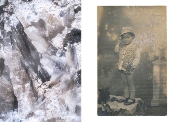 Razed to the ground in 1943 by the WWII when the Gustav Line ran across it, Gessopalena is also my hometown and a place from which I moved away. Like personal relationships, gypsum shows translucency, opacity, and color. As such, and forever fixed in the geology of our common place of origin, it remains an allegory of: 1/ the traumatic memories of a population torn by the war; 2/ the ambiguous relationship of my contemporaries with today’s neo Fascist narratives; and, 3/ the dealings, connections, and exchanges with locals and with my family members. I have combined the resulting body of work with my family archive. I juxtaposed the archive photos to the diverse gypsum crystals of the town. In so doing, I tried to put everything together into some kind of cohesive entity.