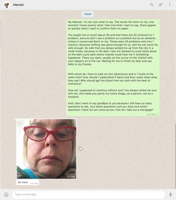 Losing a parent. What could it look like? A crash? A crime? An accident? Slow or fast? I hereby present my mom - she stars in her own death scene - and myself: the daughter who is looking for the best possible death. Could it be possible to die together