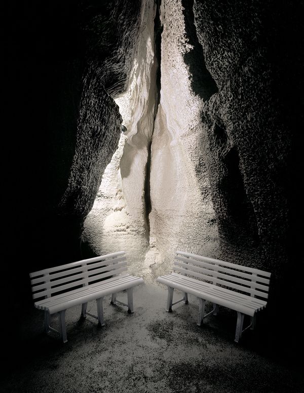 SHOW CAVES is a collection of large format analog photographs that explores the anthropocentric tendencies of modern tourism seen in domestic and international show caves. Show Caves are natural caves managed by government or commercial organizations that have been modified to accommodate tourism. The objective of this body of work is to highlight the tension that exists between the natural beauty of caves and the renovations people make in order to transform these spaces into tourist attractions. These caverns have been curated to cater to both the physical needs of sightseers as well as to our collective expectation of the fantasy of a cave. Elaborate lighting, elevators, poured cement trails, even bathrooms and souvenir stands have been added so that ancient geological wonders can be accessible and marketable to a money-giving public. Are these additions acts of vandalism disrupting a delicate eco-system for the sake of commercial profit? Or do these human interventions draw attention to the preservation of caves and make hard-to-access natural wonders readily available for appreciation?
