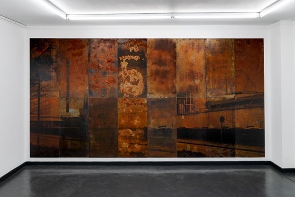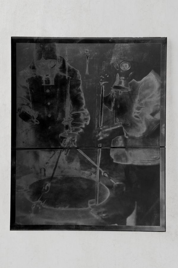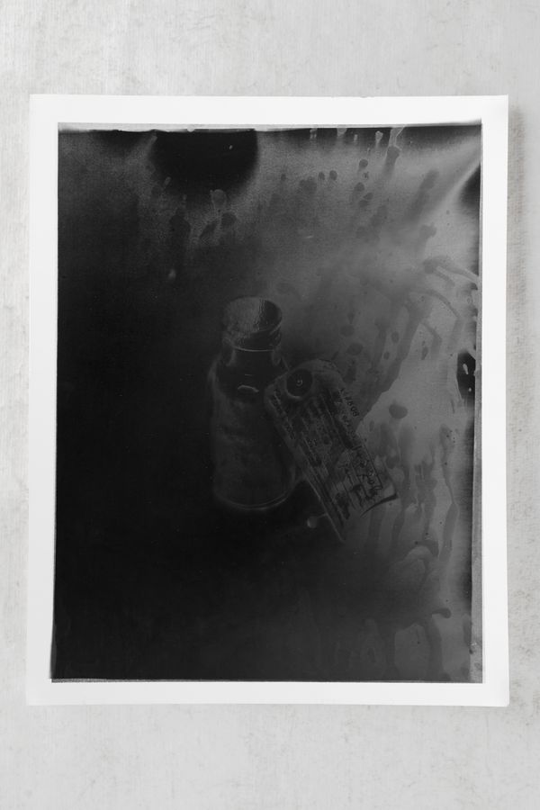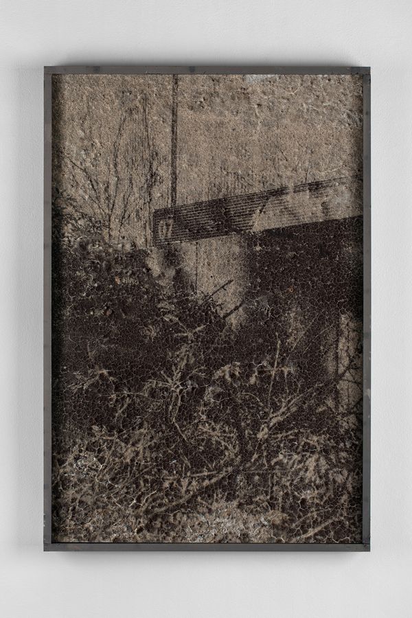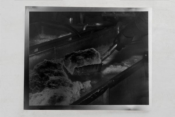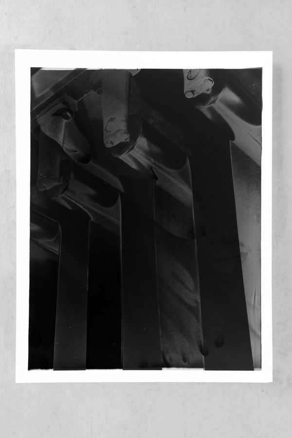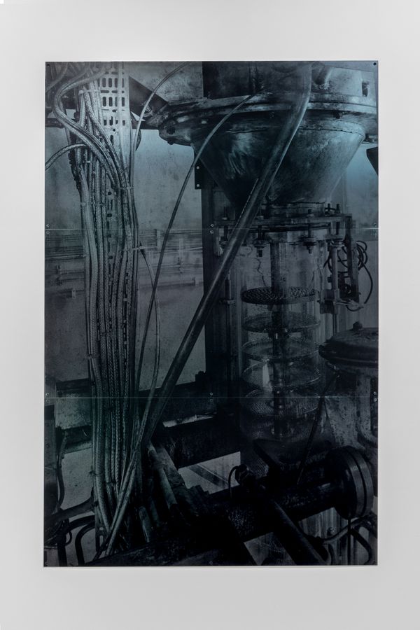 The presented works are the results of different experimental printing processes developed while doing research on this story. Photographs of the creek are printed in the darkroom with a technique where the mud taken from the creek is mixed with silver salts. Industrial images from the archive of the factory are printed on silver-gelatine paper and solarized. Architecture images of the factory are printed with uv inks on steel plates.