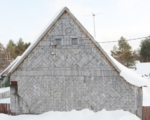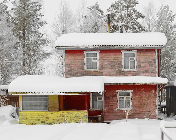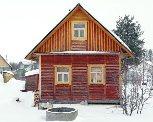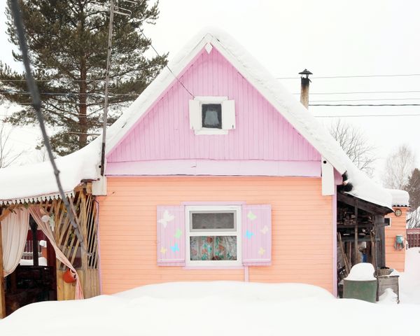 As I was wandering the streets of remote villages around Arkhangelsk and Severodvinsk, among the typical and predictable «six hundred» summer dachas, I found some true architectural gems. The eccentric shapes of the miniature houses made it feel like I was on a trip to Hobbit Land. I wanted to document these structural patterns from a straightforward «objective» point of view, excluding any details that would detract from the central theme. This is also why I decided to take these photographs in the midst of winter, letting the snow do the elimination work for me, drawing all attention to the shape and color of the constructions.