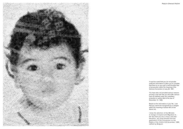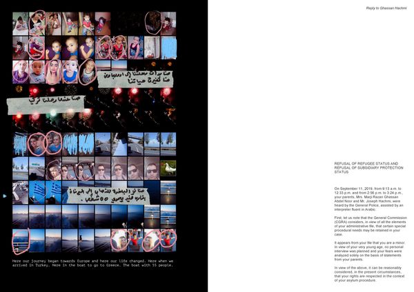Using the archive images of the family, recovered from broken smartphones, Prignot and Alvarez cross two discourses: that of the possible meeting on the one hand, delivered by a thread of everyday images, accumulated and accompanied by the comments of the woman telling her memories; and on the other hand, the discourse of non-meeting, that of the State, vertical, disembodied, made readable by the reproduction of extracts from interviews and the response of the General Commissioner for Refugees and Stateless Persons.