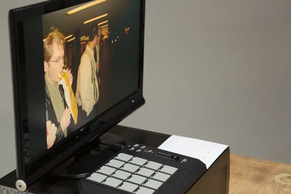 Palamedes #1, another of the 3 games set, is a midi controled interface that controls 16.000 recovered images from 16 Hard Disks. (The user can navigate through 15 keywords such as parties, selfies, animals, beaches, houses... or interact with the 16.000 photos).