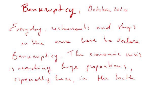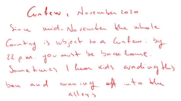 In the meantime, infections rise again, the restrictive orders start again, more and more commercial activities declare bankruptcy. This beautiful promenade where I live now, which was once full of overcrowded restaurants, bars and pubs, it's becoming, day after day, more and more empty. Restaurants in the surroundings are all closed.