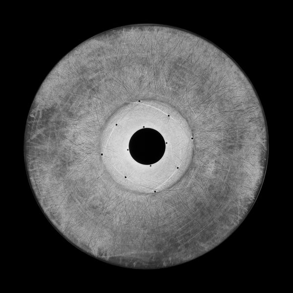 This is a series of pictures of so-called filmplates which were used for 14 years in a big Multiplex-Cinema until March of 2013. These plates transported the analogue 35mm-Film by rotation to the filmprojectors which are not in use there anymore. What we see on these pictures are the scratches made by the projectionists who worked there and showed thousands of films. We also see the patina which was left by all these films.