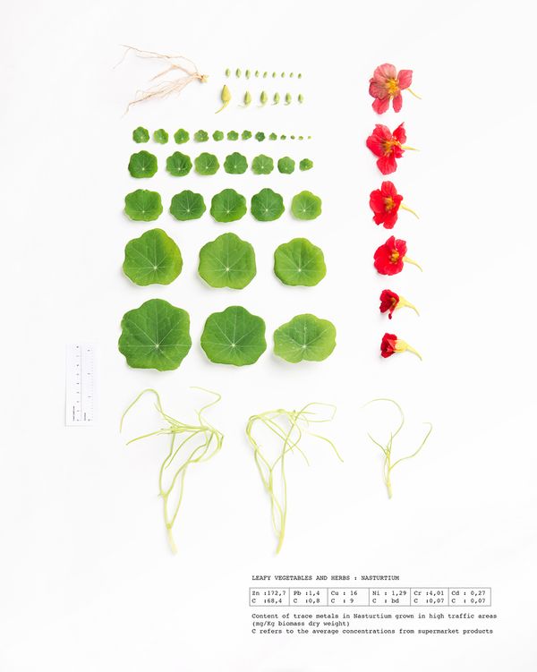 We analysed trace metal accumulation in crops and the influence of traffic burden on the concentration of trace metal in different eatable species. Trace metal level was analysed on different species (carrot, tomato, kohlrabi, mint, basilica, thyme, nasturtium…) and compared to the same species found in supermarkets.