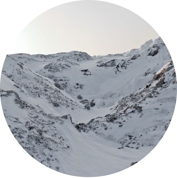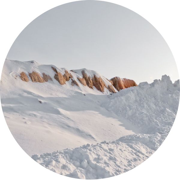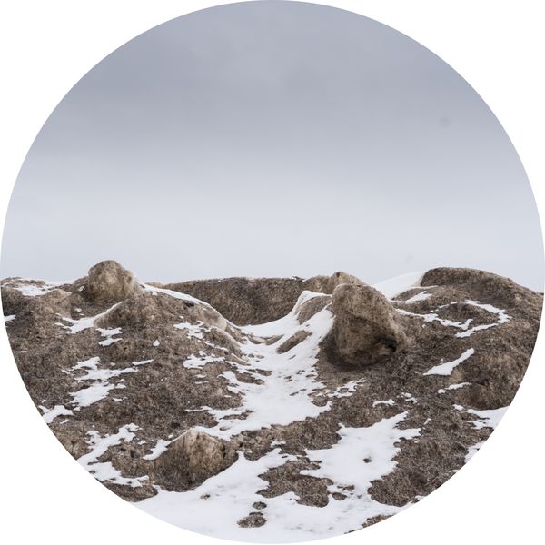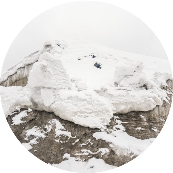The use of the round form in this presentation is to give a soft and calming effect despite the botched brutal way in which these formations were created. The circular form also suggests the discovery of new landscapes as its shape can suggest looking through a telescope, like those used by the explorers both past and present. In fact this was a new landscape, recent, but furtive and temporary. The physical make up and location of the snow makes it will never remain there very long. Therefor it is a good representation of we use and consume nature and our territory. As man has continually searched to mould the land, the photographer has moulded this new landscape.