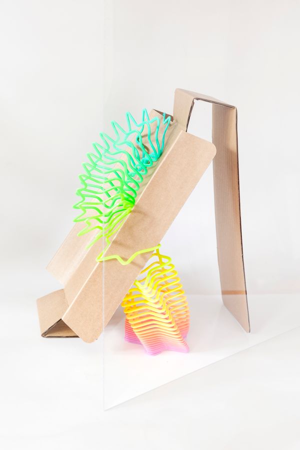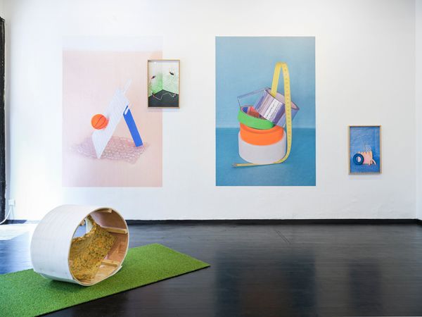 In these works, the artist explicitly shows the intimate side of her work for the first time by placing her recognisably vivid compositions next to the family photos of her grandparents from her early childhood. It was precisely her grandparents who had a decisive influence on her art practice through their constant collecting of a variety of objects, based on the glorification of seemingly useless or uninteresting everyday objects. The assortments of various materials that come from or remind her of her childhood occupy a central place in her compositions. Whether they are a handful of marbles, brushes, a plastic toy or an old skipping rope, they become autonomous subjects in strikingly lit constructions. Reminiscent of advertising photography, her photographic approach with dazzling lighting always functions like a game, choosing simple (but, for the artist, sentimental) objects.
