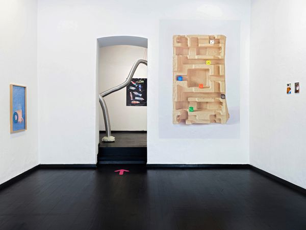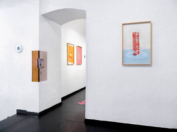 In such a way, both the artist’s work process and its echo in the spatial setting function as allusions to child play. Rosc acts instinctively, seemingly without order, but nevertheless with her own rules and restrictions. She combines everyday materials and prefabricated objects without excessive rationalisation, and it is precisely their non-functionality and banality that give the objects added value, make them interesting and bring humour to the works. Rosc explores the formulation of memory by questioning the boundary between photograph and object, the photographed object and its placement in the space – photographs, like memory, are often a field for the staging of reality, which is highlighted by the actual objects displayed alongside the photographs that often reveal false dimensions, materials and functions. With this kind of juxtaposition, Rosc wants to draw attention to the unreliability of memory and the idealisation of childhood, but above all to the fact that the present can never exist independently of our past.