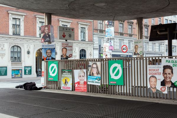 Bursting in on this sequence of photographs of everyday life that depict the social situations, landscapes and references that outline the characteristic features of the Danish population are the campaign posters that infiltrated the city during the weeks prior to election day on 5 June 2019. However, these posters of political candidates were defaced by the population as a show of rejection, itself a build-up from the reaction to the election campaigns; a reaction whose beginning and end are becoming ever-more blurred. The precarious balance affecting modern-day society is best conveyed as a map dotted with different elements, actions and reactions, no longer arranged in a cause-and-effect relationship.