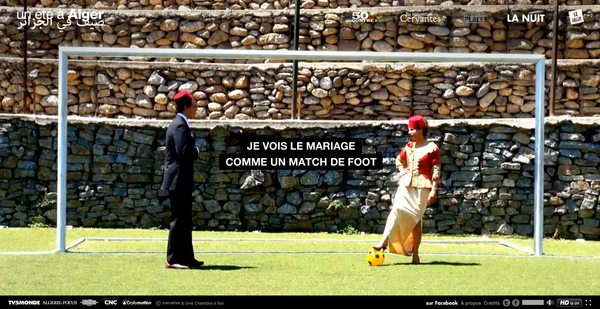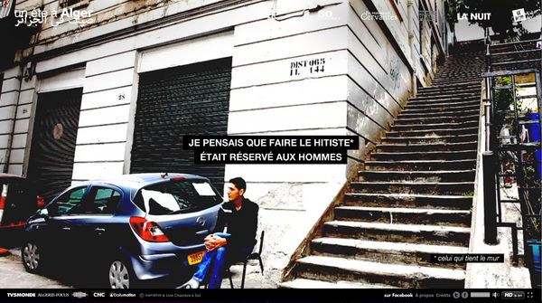 In Algeria, men and women live more and more separately in public spaces. They do not interact much outside their homes and very often, women are not welcome in public spaces. More and more spaces are becoming – unofficially or officially – reserved for men. I want to question the absence of women in public spaces. I perform actions within these spaces with my camera and impose my feminine presence into the man’s world. In these six short sequences, I worked with the image and sound as an allegory of the separation of women and men in the Algerian urban public space.