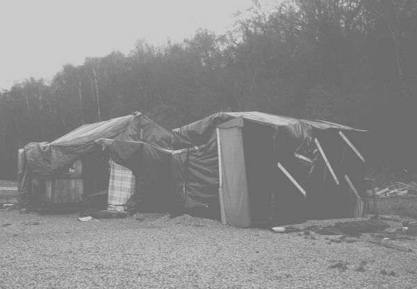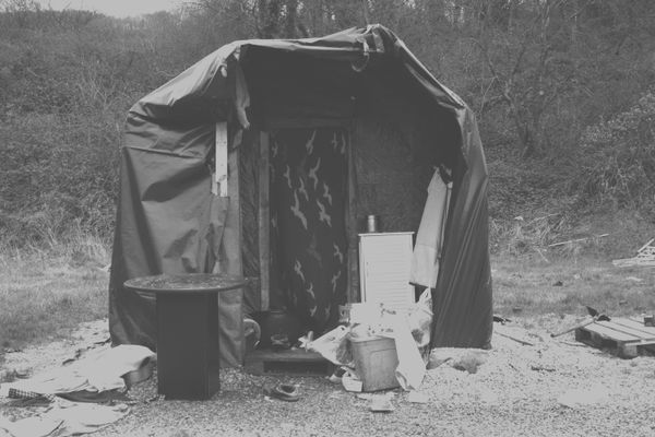 This first chapter of the creative residency in Normandy took place by the sea near Cherbourg. The coast and its horizon leading to a distant fantasy abruptly contrast with the enclosed suffocating environment of the camp and its makeshift shelters. The collage process interferes with the traditional portrait of the photographic