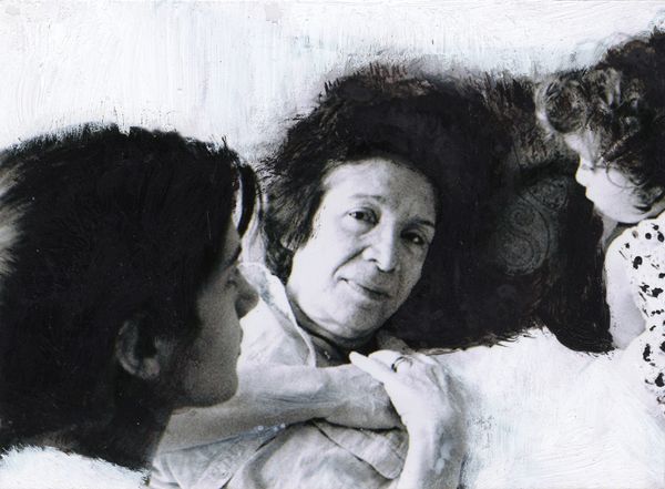 “Tehran Diary”, is an ongoing project on my mother’s life in Tehran and on her trips to visit her three children living abroad. My mother belongs to a generation of middle class Iranian parents who made possible a revolution, which led to their children leaving their homeland to live in a self-imposed exile. This generation now lives alone, slowly forgotten and left to their own devices. My mother continues to travel every year to visit her three children living in three different countries despite the hassle of difficult visa application procedures. In this series, I try to capture her intimate moments: of silent contemplation, of being surrounded by her children and grandchildren, of pondering her life. After printing these images in small snapshot dimensions, I use black and white paint to shade each photo. This therapeutic stage is also a way to spend more time with her when she is not with me. The result is a hybrid of photography and painting, a sense of my mother’s surreal life.