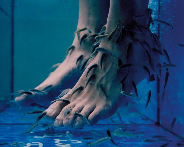 In my work, I generally seek to evoke the tension between opposing notions, such as the beautiful and the ugly, fascination and repulsion, the ordinary and the spectacular... That moment when you can see the crack in the world is an ongoing personal project on which I have been working for over a year. Using the body as a raw material - my own or that of people close to me - I'm looking to create something spectacular out of the simple things around me. The photographs depict an act of metamorphosis. A gigantic body that fills the frame to the point of overflowing. Fish feasting on feet, a fake sunset, a hand hiding it and bodies touching. All these fragments merge to create something new, like a dream world where the bodies are set free. Reality becomes malleable and things are not condemned to be as they were defined.