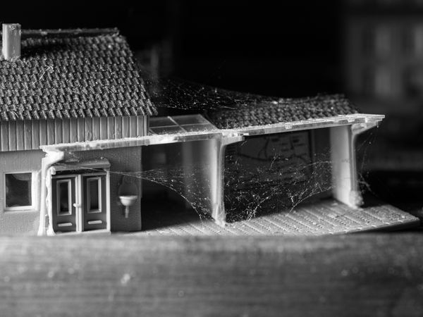 When I started working on this subject, I wanted to save the traces of an aspect of this man's life. Visually, The viewer should slip into the role of someone (perhaps a child) who discovers the model landscape, like somebody who enters an abandoned house with a torch, pointing the light beam here and there to get a clearer view of specific detail and starts to think of the person who built it.