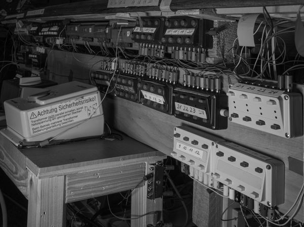 Over time, I saw that there is something as Neil Gaiman describes it in »Neverwhere«. In this novel, a »London above« is accompanied by the mysterious, eery »London below«. In my case, above is a structured miniature landscape and precisely labelled switches, but below is an impenetrable cable tangle with current paths that only the designer could understand.