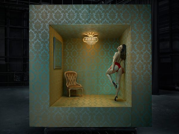 I chose to create mini-theatrical sets as backdrops for the main images. Each setting is relevant to the woman’s profession. I also mounted the sets on a stage in order to heighten the illusion that they are ‘performers in real life’. I deliberately lit the scenes to heighten further the enigmatic nature of their acts, representing them as split second filmic recreations of their lives. I asked my models to pose or engage in their acts as they normally would - sexy and playful, but also provocative.