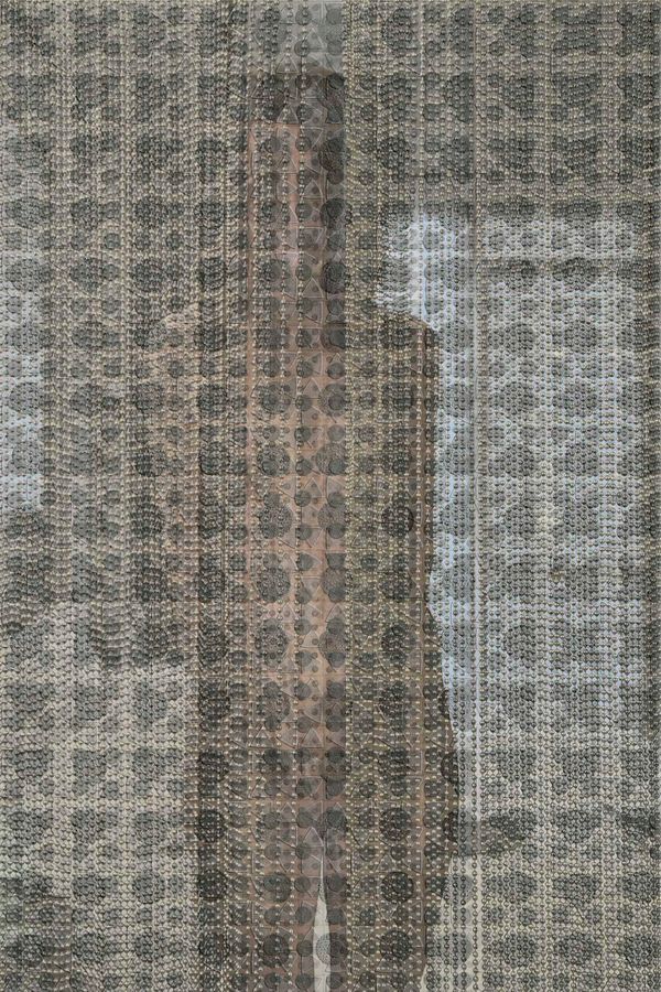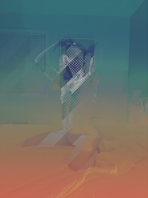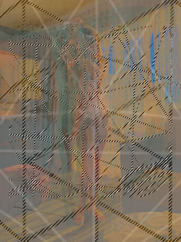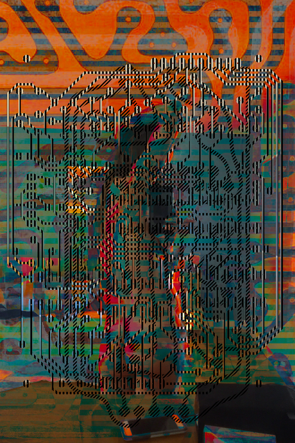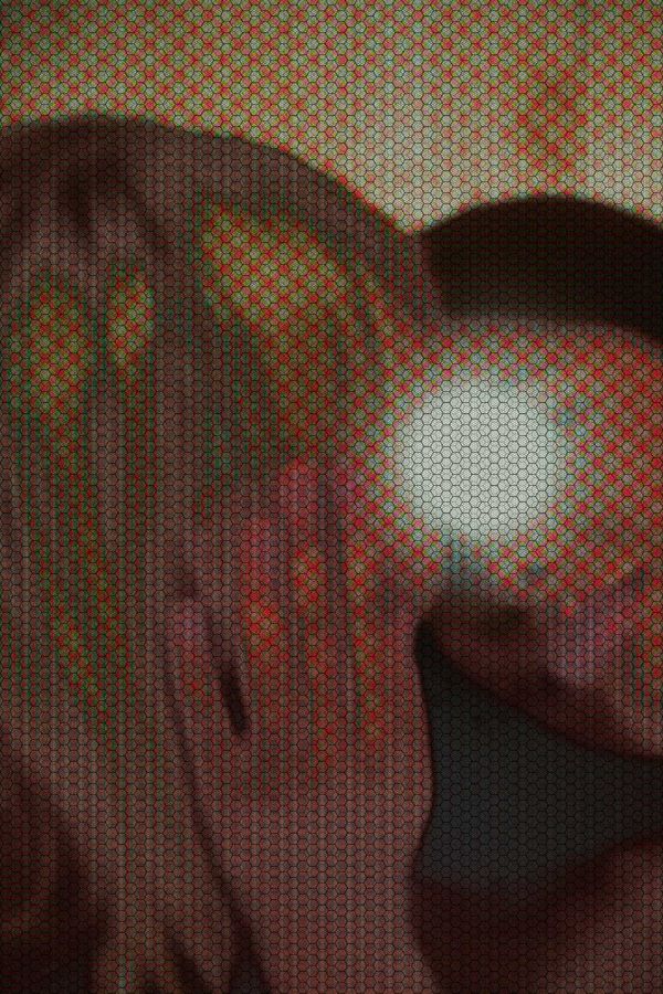 In “The Alternatives” I present intimate photographs made with a variety of camera devices that are overlaid with “screens” created in Photoshop. The screens bend and distort the visual accessibility and implied narrative of the underlying image(s), and are composed of scans of things like optical illusions, hybridized patterns from children’s books, sections of maps, computational models, and objects from mathematics. While I hope the project presents a record of relationship and intimacy, the series is also meant to challenge many of our assumptions around the ubiquitousness of photographic images and our digital identities. I want my prints to push and pull the viewer – to hook the eye toward investigating further into the materiality of the object. At the macro level, the printed files (which are built at forty inch widths) are about figuration and the sometimes clumsy objectification(s) of partnership. Microscopically, however, they are composed of more abstract and confounding bits of data.