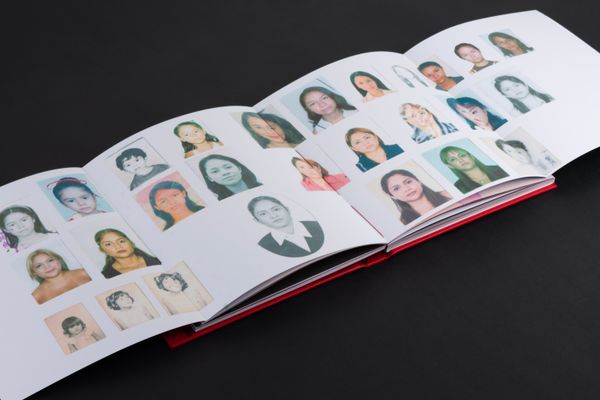 The cover and heart of the book features a chronological sequence of childhood photographs, school credentials, and passports, creating a visual timeline that traces how both Vero and Najhmi have evolved through the years. The cover itself is an intervention of one of the appointment cards given at the hospital, while the typography throughout the book mirrors that used in medical records. Red emerges as a crucial element throughout the artistic work—blood was and has been present throughout the illness, between hospital visits, and in memory, this color becomes an integral part of the project.