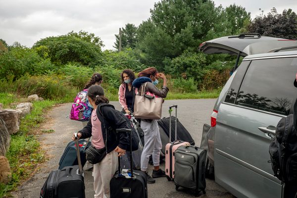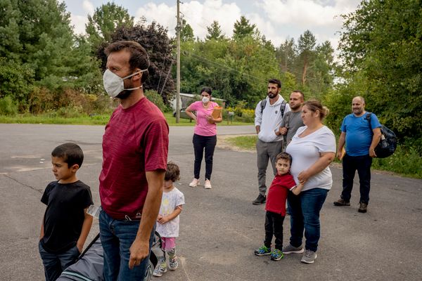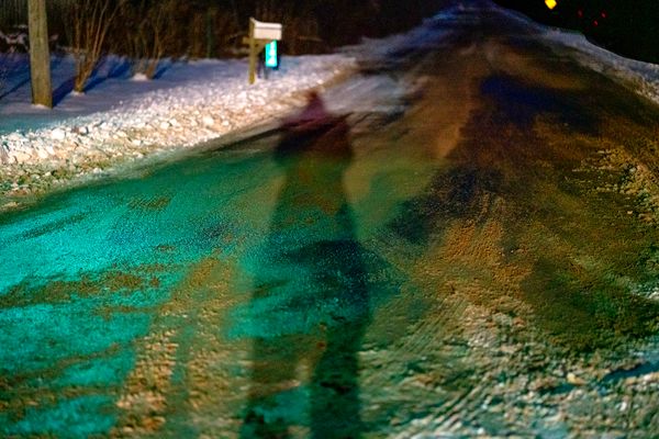 "The Crossing", Roxham Road, refers to an irregular border site between New York state, U.S.A. and Quebec, Canada, where refugees have been attempting to walk into Canada since 2017, to claim asylum. Through photographs, made during 10 trips in 2019, 2021 and 2022, I explore the various forces that converge and intersect in response to its existence – the cab drivers who shuttle asylum-seekers from Plattsburgh to the border, volunteers offering support, Canadian authorities who control the activity, asylum-seekers, the rural landscape, the Plattsburgh bus station (most refugees take the bus from NYC - Plattsburgh, then cab to site, not a legal point of entry), the road, RCMP buildings and discarded objects.