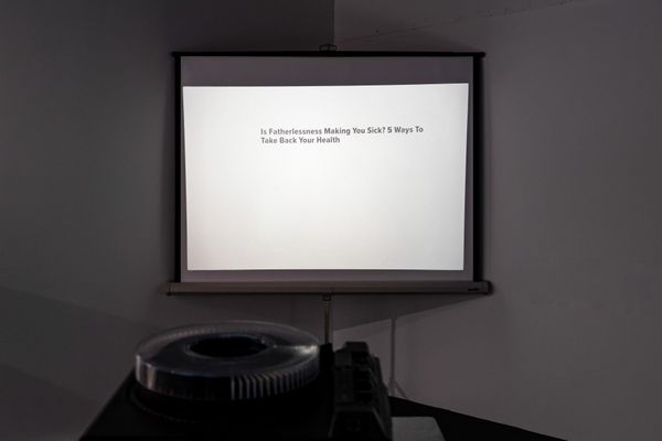 The found text and image works [are you] Projecting and The Normality of the Patriarch re-tool the existing language mechanisms and connotations of found texts, working through the power inherent in their original context (scholarship, advertising, mass media, pop culture) and their embedded mythic speech.
