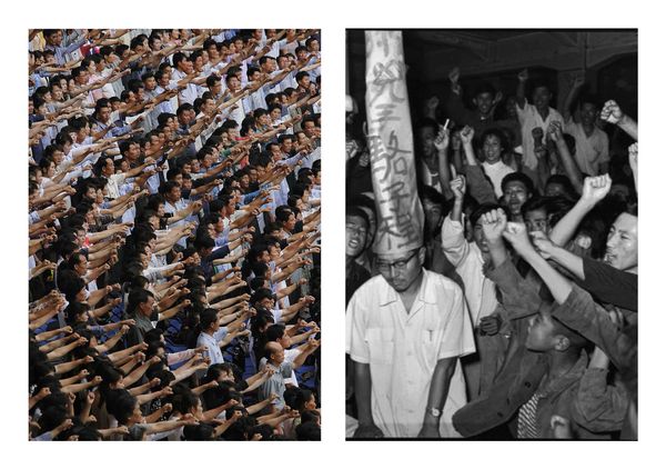 Every picture in the archive is considered as a codification of the gesture, corresponding a non-verbal act with its signification. Then, in a second step, the fists are associated in diptych, sequences, and an atlas using images from the fist archive by metonymic and iconological relations. This process aims to give a second reflection, like the study of the movement and the opposed political environment (black panthers, KKK, feminism, communism, fascism etc...). Tracing the history of the recent revolutions and protests I’ve realized that the story of the political clenched fist can be considered younger than the discovery of photography itself. A raised fist appeared for the first time as a political sign in a painting in 1848 by Daumier representing a woman during the Third French Revolution, until that time fists were just expressions of human nature. The first time a fist has been used as a collective symbol of solidarity was by the Industrial Workers of the World (IWW) on June 30, 1917. Looking for important revolutionaries of the last century I realised that the only images of Che Guevara and Lenin with clenched fists are the ones caused by rigor mortis.