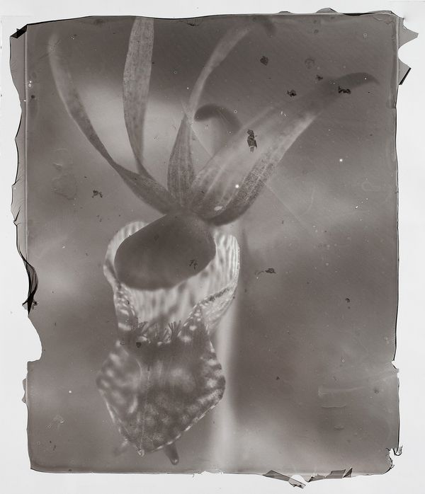 Printed as lantern slides, the forest memory is held captive on sheets of glass accentuating both the fragility of life and our precarious position due to climate change. The images shift depending on whether you see them from the shiny side or the emulsion side of the glass. Sometimes, the photograph is only partially captured, like an unfurled piece of ash floating up from the fire. This is the Ghost Forest – Out of the Ashes. When installed, the Ghost Forest moves photography off the wall and into the middle of the room. The photographs on glass hang from the ceiling on pairs of cables that suggest the outline of the trees. The viewer is invited to wander through observing all stages in the life of a forest; small understory flowers, current and historical logging, dappled light in the trees as well as the aftereffects of fire. The images included here present a partial view of The Ghost Forest – Out of the Ashes as it hangs in my studio and some close-ups of individual forest memories.