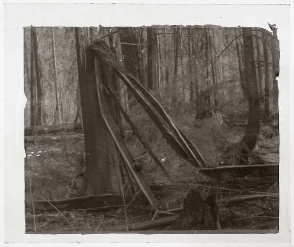 In the fall of 2020, huge wildfires raged on the west coast of the U.S., our sky turned yellow-gray from smoke, it rained ash and left all living creatures unable to breathe. I mourned the loss of forest lands. My desire to create something out of the ruins led me to collect ash from the fires. I then realized I could create carbon prints, transforming the charred wood into recorded images of the forests themselves. After extensive research and experimentation, I am now making prints from the ash of many wildfires with visits to more fire sites in my plans. Invented in 1855, the carbon print is considered the most archival of all photographic printing processes with an estimated life of 10,000 years. Carbon does not fade. Instead, in my hands, the burned remains of the trees become photographs, in hopeful anticipation of the natural regeneration after fire. My process and its resulting prints, with their frilled edges and torn emulsion echo the way natural fire cycles can surmount devastation to provide nutrients to the soil, force a pinecone to disperse its seeds, or shape the landscape, in contrast to the extreme intensity and size of the fires that are now common. The photographs show us the beauty being lost to human negligence and the climate crisis.