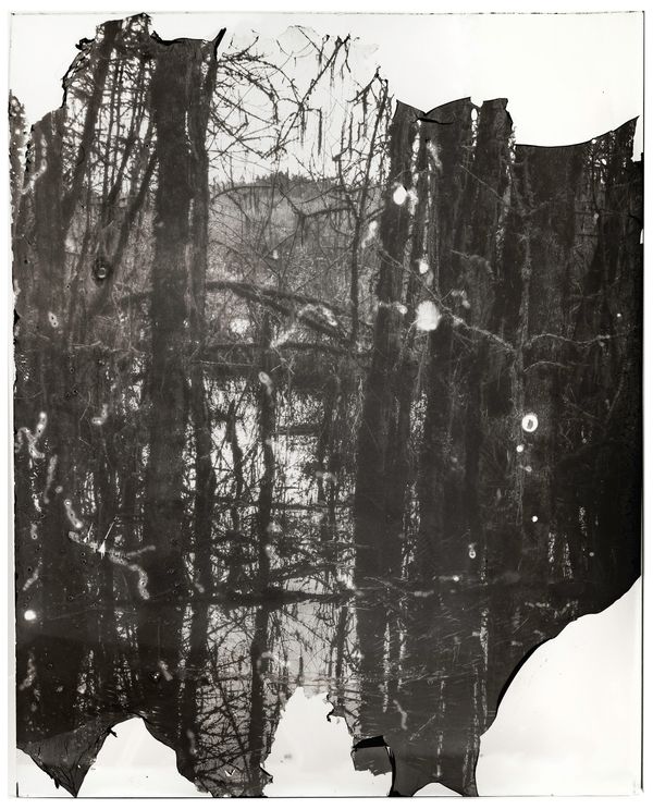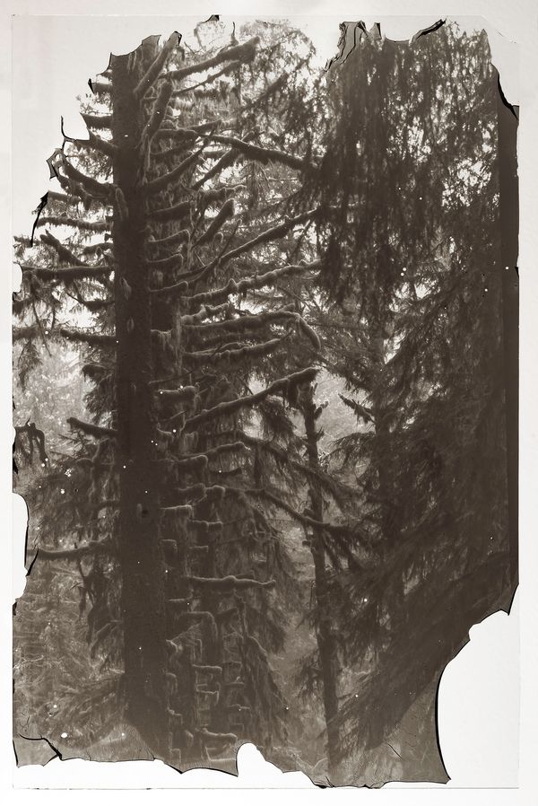 Printed on glass sheets using the carbon printing process I take ash from forest fires and turn it into photographs, the memories of trees devastated by climate change enhanced conflagrations.