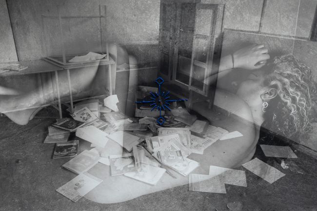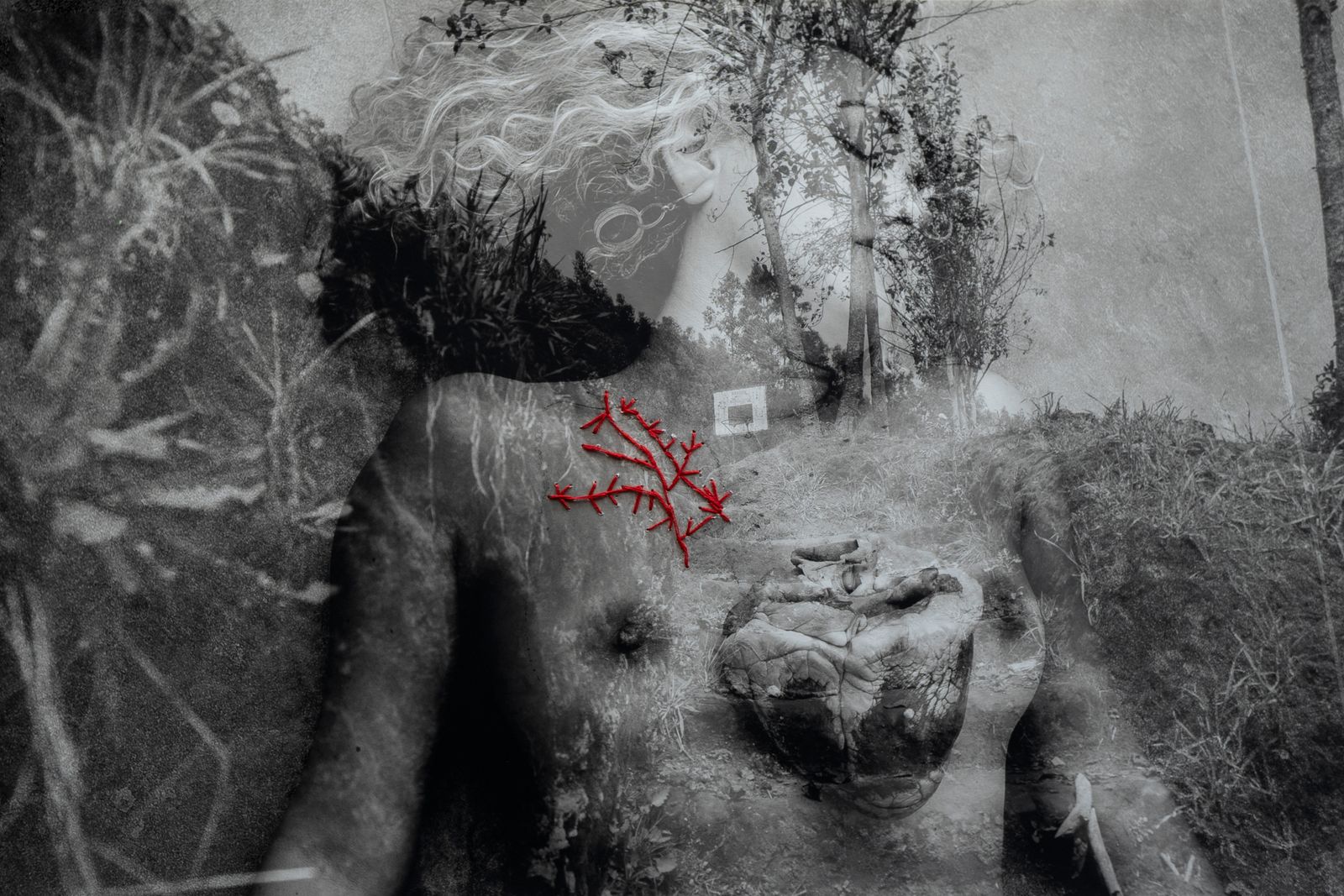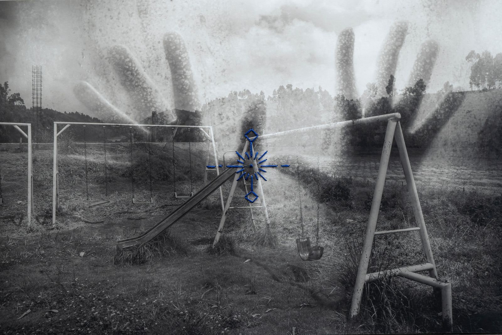 This photographic series represents the empty space of community schools, fused with the empty space of my naked body, crossed by the symbols of the chacana, Andean symbol of the relationship of the relationality of the whole.