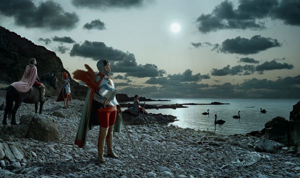 knight. As the knights arrive to the beach at twilight, the lingering atmosphere is